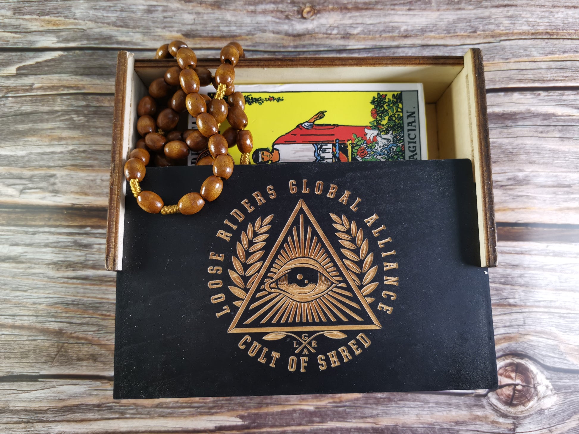 Puinen säilytysrasia All-Seeing Eye kuvioilla. Soveltuu Tarot korttien, korujen, noppien ja minkä tahansa muun säilyttämiseen.