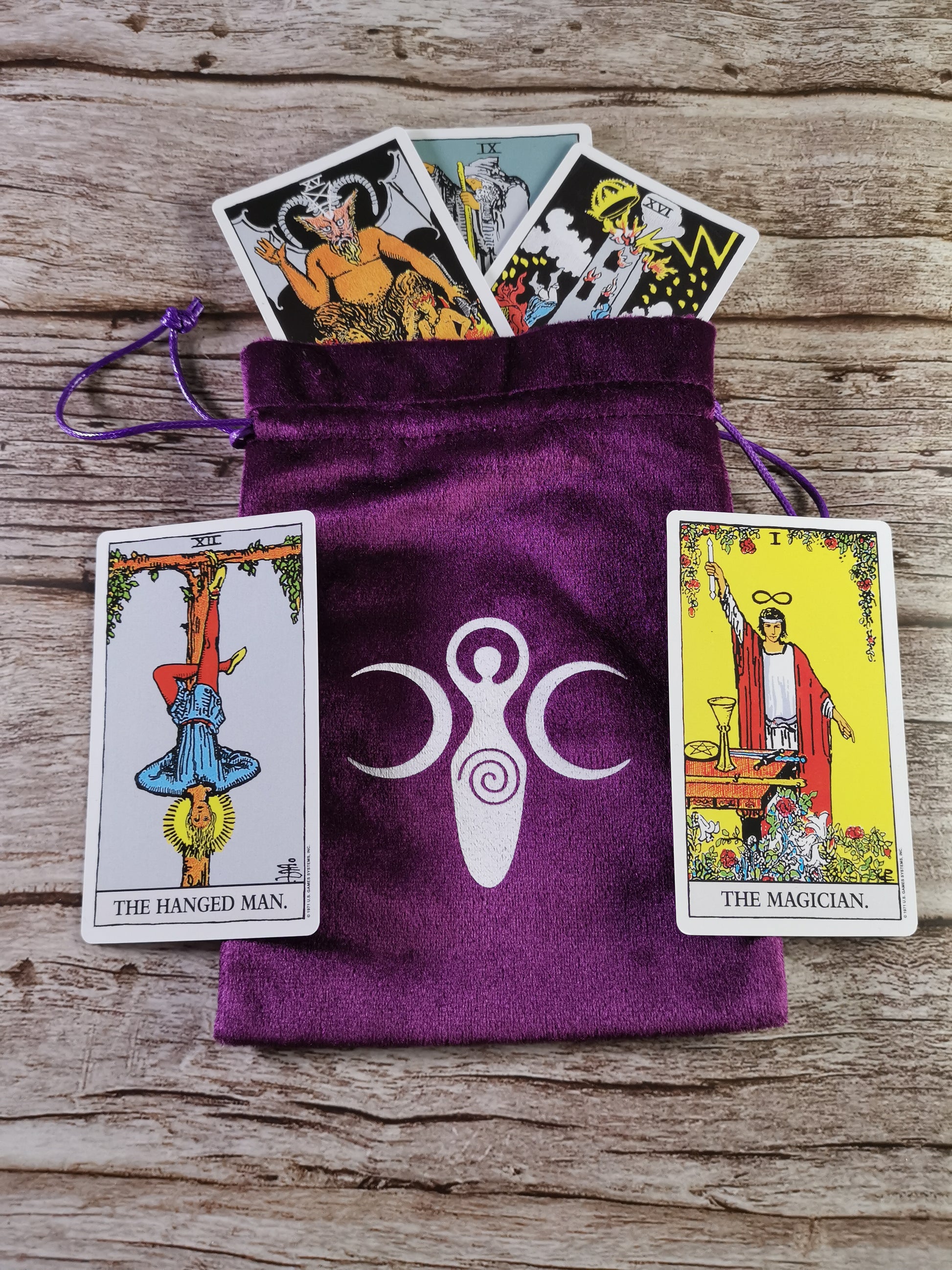 Samettinen pussukka mystikoille, jotka haluavat säilyttää salaisia asioita maagisessa pussissa. Soveltuu esim. Tarot korttien, korujen tai noppien säilyttämiseen. Sopii myös feminiinisen voiman säilyttämiseen.